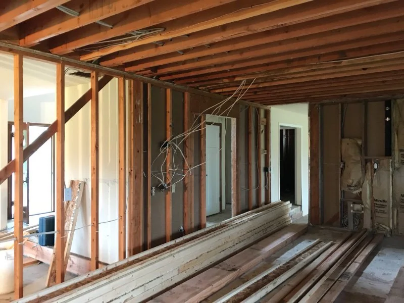 Once the design has been signed off by the client the drawings are finalised and delivered to the city/ county building department for review. When a permit is issued (with variable time frames depending on scope of the project and busyness of the staff), demolition can commence. It is in this stage that the contractor may find some unexpected problems such as mold or water damage, however a competent contractor and a contingency budget go a long way to relieve that stress. Framing new walls and running new mechanical, electrical and plumbing is next. In this instance we also raised the floor in the living room to match the rest of the lower level. It is at this point where the more pressing design decisions have to be locked in. We begin to specify stone, tile, finishes, fixtures, hardware, appliances, flooring, lighting etc., with the ability to change the materials in the 3D model ahead of time if the client wishes. The contractor then schedules the separate vendors to arrive on-site and complete their services.